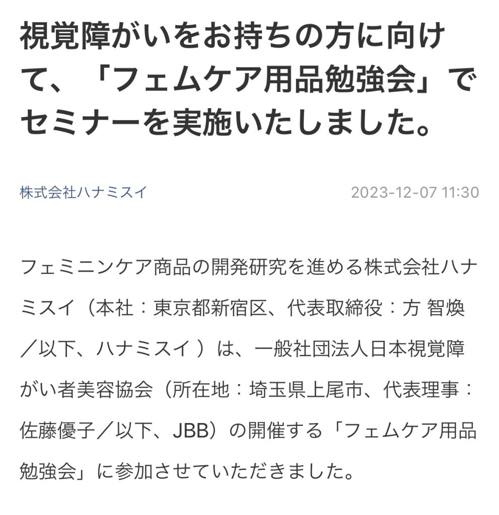視覚障がい者のための「フェムケア用品勉強会」開催
