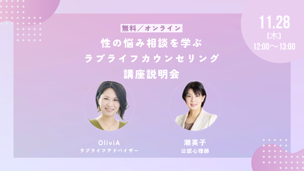 「ラブライフカウンセリング入門講座」は、性の悩みに寄り添うプロフェッショナルスキルを学べるオンライン講座です。
