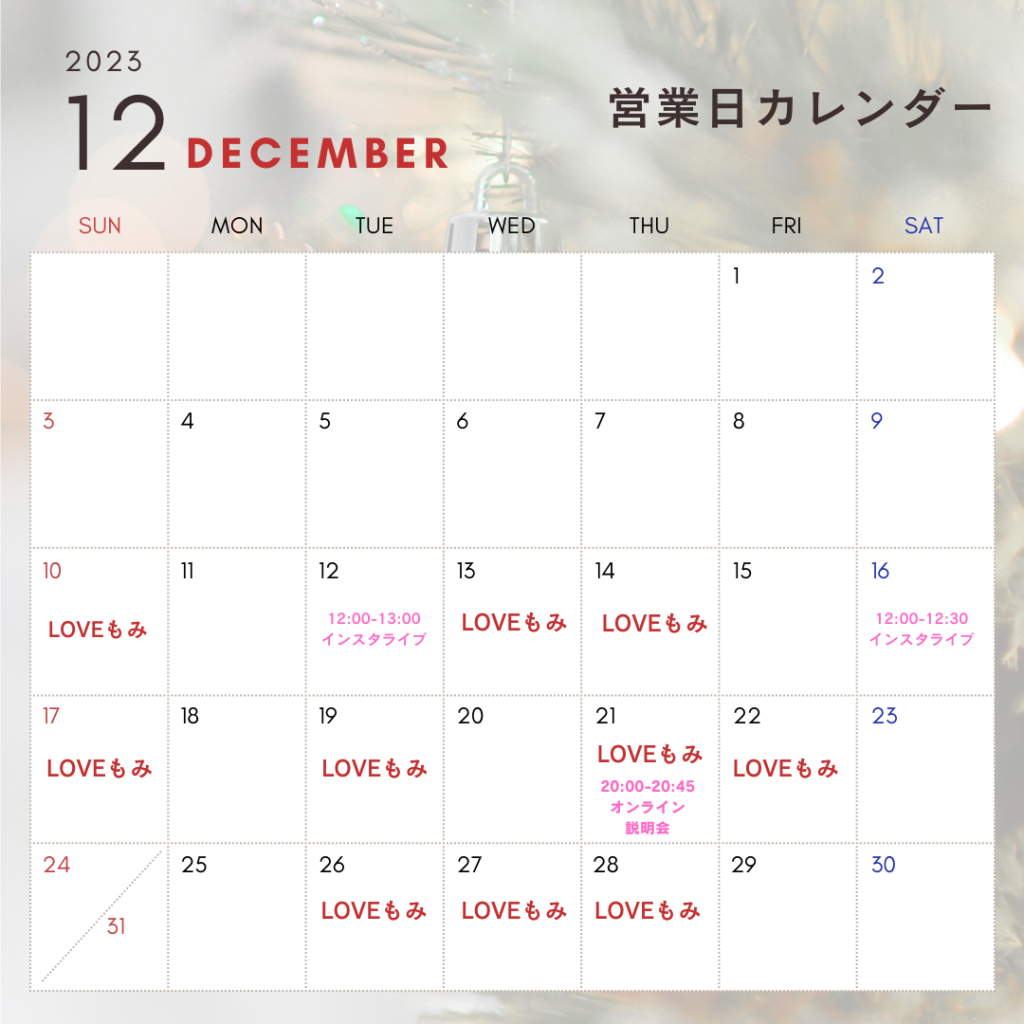 12月のご予約受付日時