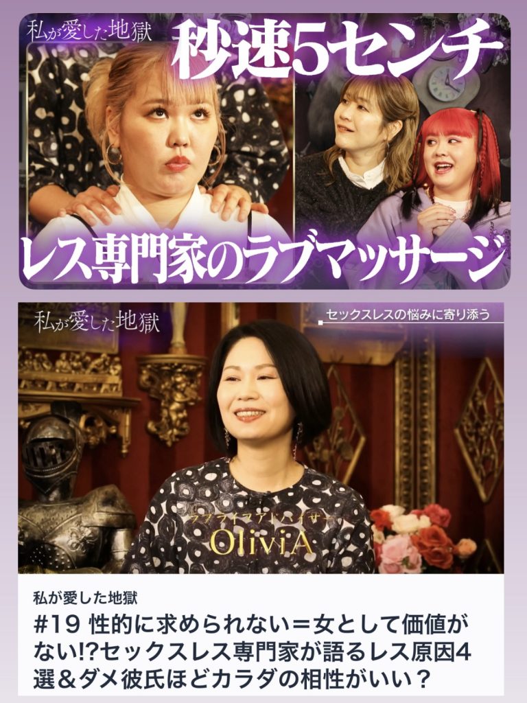 2025.02.20 2/20 テレビ朝日「私が愛した地獄」セックスレス専門家としてゲスト出演 ツイート 2025年2月20日(木) 深夜2時34分交際、婚活、結婚、妊活、浮気に不倫… 「みんな色々抱えている」世代の女性のリアルを MCぺえ&平成フラミンゴRIHO&紅しょうが稲田美紀がぶっちゃけまくる! 「性的に求められない=女として価値がない!?」セックスレス専門家が語るレス原因4選 公式サイトTver